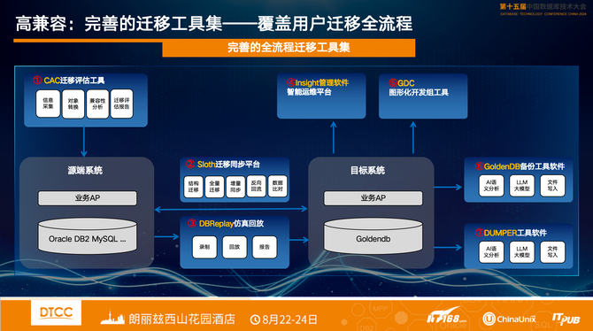“高兼容性”则是我们继承并优化既有系统的重要方向。为降低替换原有数据库的成本,新数据库的兼容能力至关重要。同时,鉴于国内IT系统的复杂性,尤其是大型机构如银行内部数百个应用系统的存在,手工替换显然不切实际。因此,构建完善的工具体系与方法论,以支持高效迁移,成为我们快速发展的重要保障。