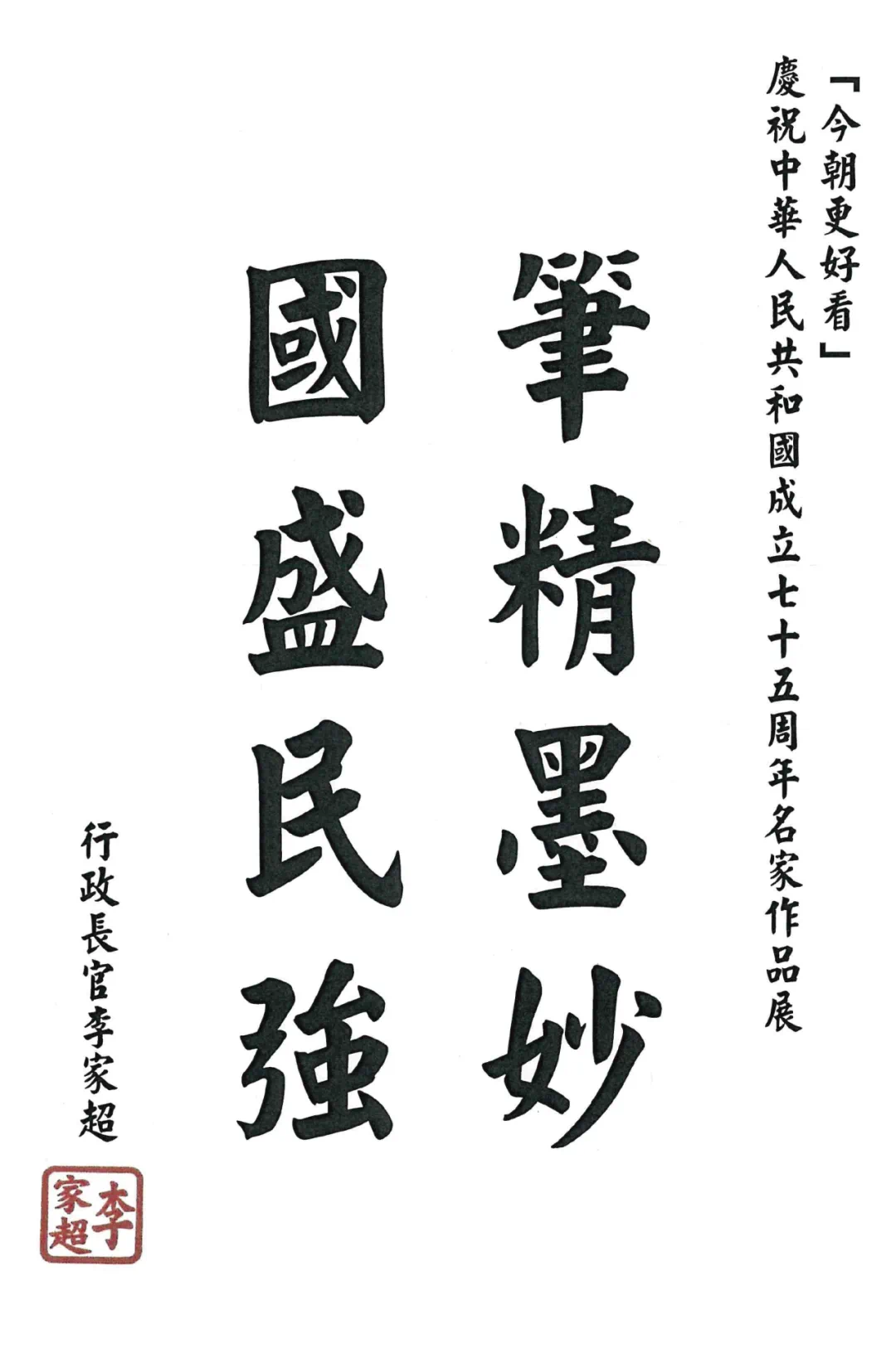 8月23日,“今朝更好看——庆祝中华人民共和国成立75周年名家作品展”在香港会展中心开幕。香港特区行政长官李家超为本次展览题辞“笔精墨妙,国盛民强”。香港特区政府相关部门官员、中央驻港机构有关负责人及香港社会各界人士代表共300多人出席开幕典礼。展览共展出120余幅作品,其中来自内地的100幅典藏精品多是出自齐白石、徐悲鸿、李可染、傅抱石、吴冠中等中国近现代著名书画家之笔,同时还展出了港澳地区当代知名艺术家饶宗颐、林天行、蔡豪杰等人20余幅作品。