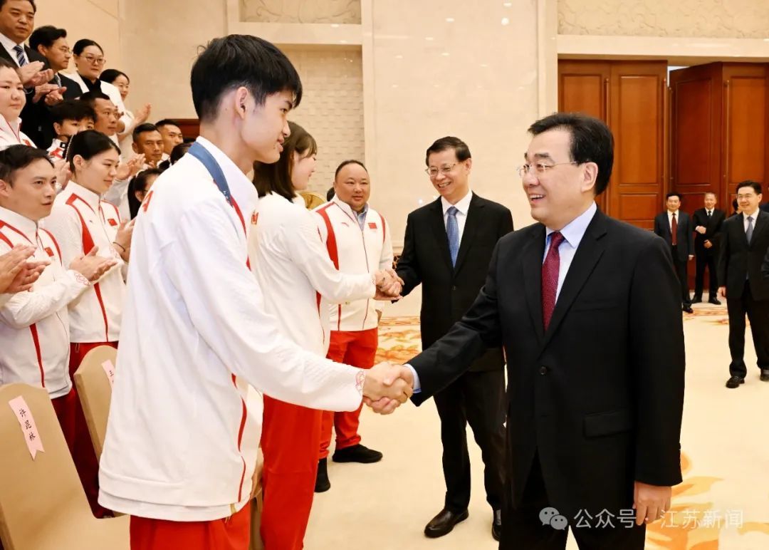 信长星指出,国运兴则体育兴,国家强则体育强。希望各位运动员、教练员牢记习近平总书记殷殷嘱托,聚焦新的奥运备战周期,瞄准新的赛场,刻苦训练、勇攀高峰,力争再创佳绩、再立新功。全省各级各部门要认真落实党中央决策部署,进一步加快体育改革创新步伐,推动全民健身和全民健康深度融合,以竞技体育带动群众体育、青少年体育蓬勃开展,为建设体育强国、健康中国作出江苏更大贡献。省委、省政府将一如既往高度重视体育事业发展,为大家训练和比赛营造更优环境、提供更好保障。全省上下要向奥运健儿学习,以“人生能有几回搏”的奋进姿态,在推进强国建设、民族复兴伟业中展现新担当、新作为。