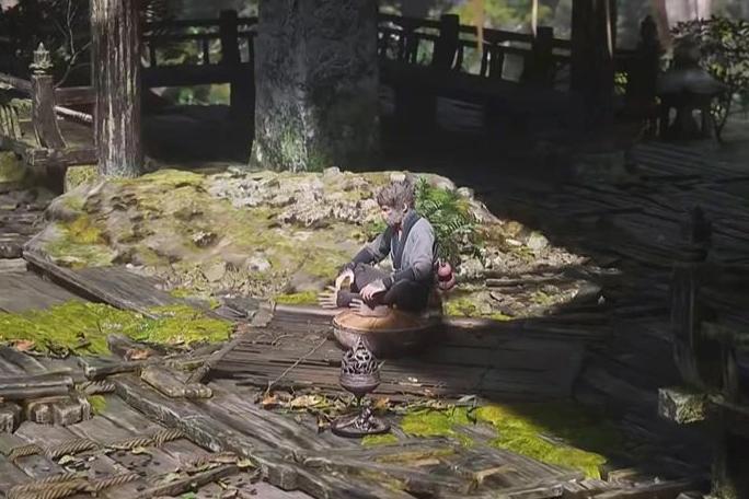 3A游戏《黑神话:悟空》中苍狼林山亭打坐的画面(闵博提供)。