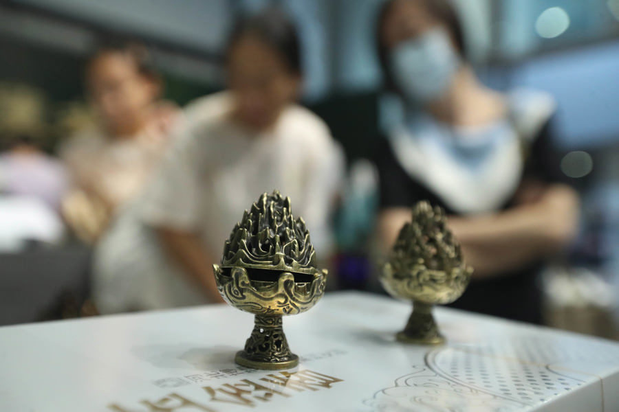 闵行博物馆宣教部主任徐迪介绍,《大汉未央——河北王室精品文物展》8月25日闭展,且暑假临近尾声,这几天来参观的客流络绎不绝,加上大家对《黑神话·悟空》中博山炉的关注,客流比平时增加20%。闵博在8月23日-25日开放夜场,满足公众参观需求。