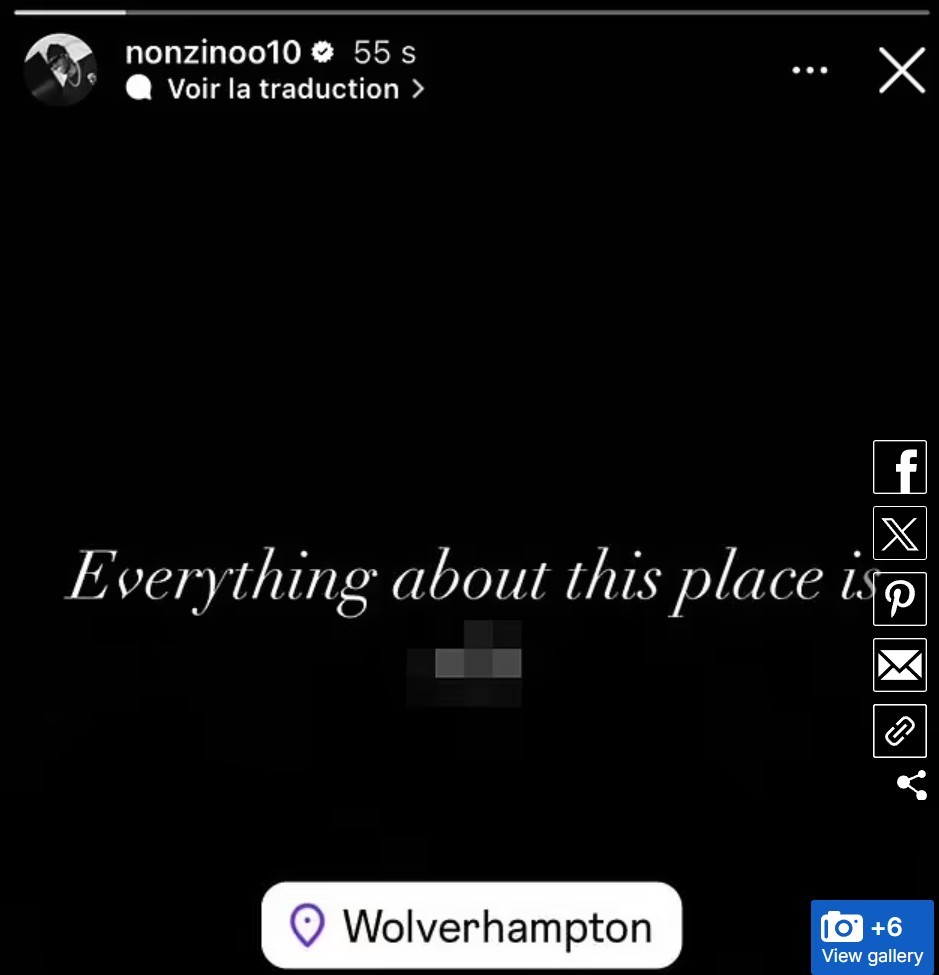 马杜埃凯在帖子中分享了他的所在地——伍尔弗汉普顿,并写道:“关于这个地方的一切都是屎(sh*t)”,这似乎是他不小心发布的。