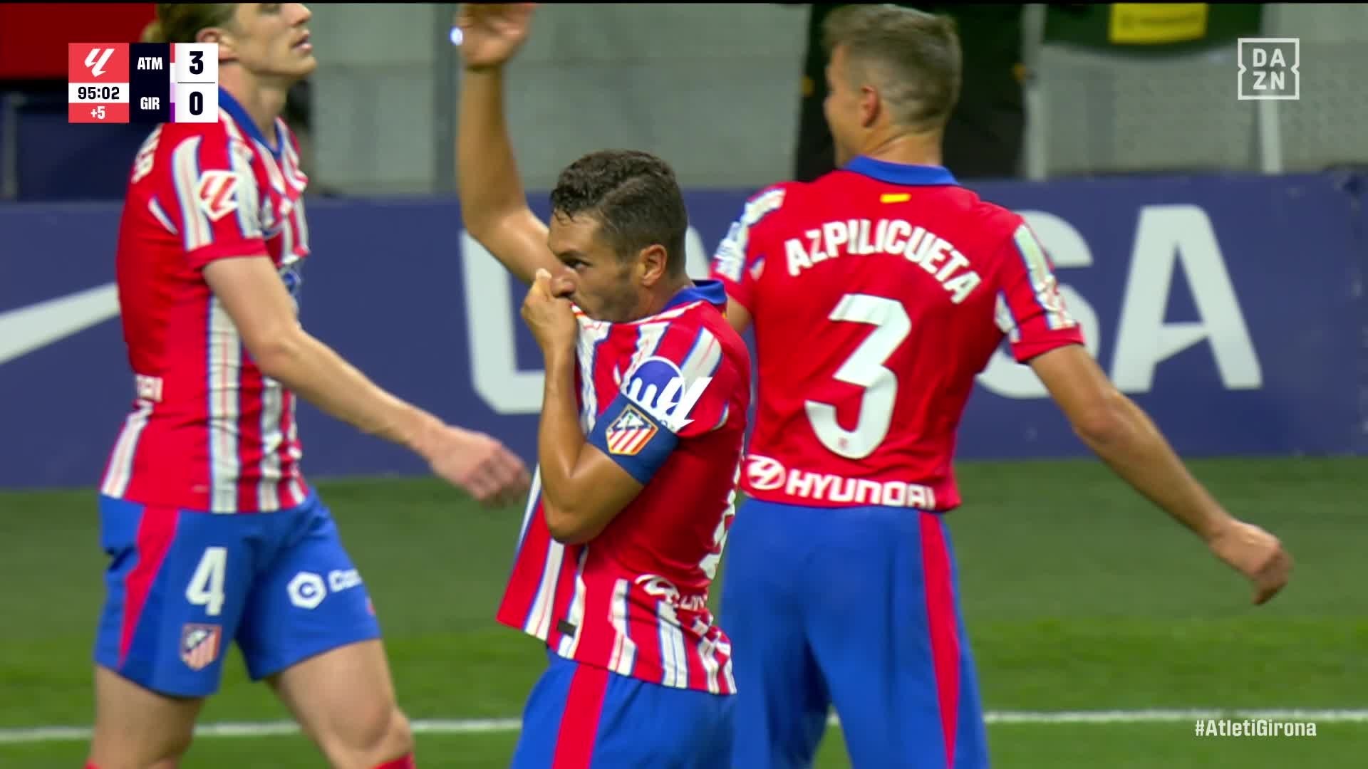 马竞队长科克在本场比赛的伤停补时阶段攻入了球队的第三个进球,这也使得他终结了自己长达两年半的西甲联赛进球荒。