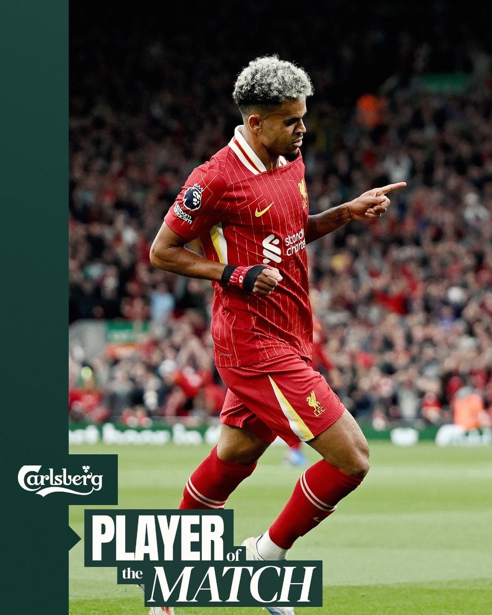 最终经过球迷评选,路易斯-迪亚斯当选利物浦队内全场最佳球员。