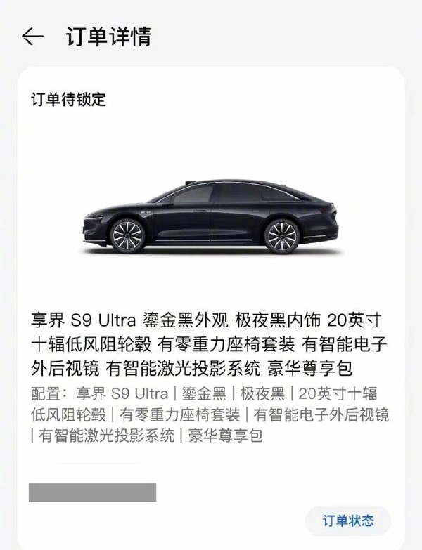 按照惯例,黄轩也晒出了享界S9的订单详情。他发文称:听说华为智驾很强,期待我的首台智驾车享界S9。和杨幂一样,黄轩也下订的是享界S9 Ultra版鎏金黑配色。此外,他选择了极夜黑内饰、20英寸十辐轮毂、零重力座椅套装、智能电子外后视镜、激光投影系统、豪华尊享包等。