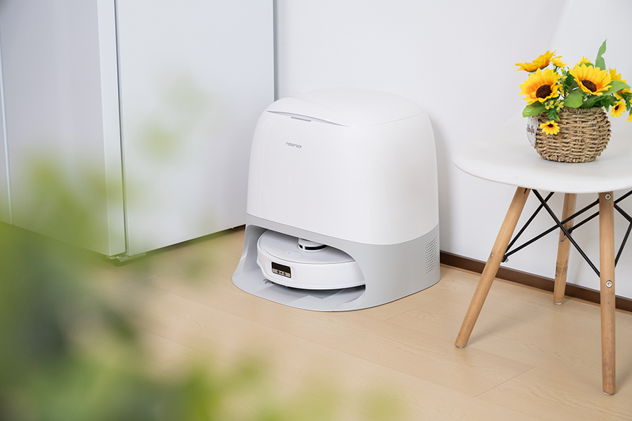 在扫地机回到基站时,基站会自动抽取机器尘盒里的垃圾,集中到内置的抗菌尘袋中存放。尔后,基站会用加热到75℃的温水对拖布进行清洗,配合基站内的清洗刮盘,不仅可以洗掉粘在底盘上的顽固污渍,也能起到除菌效果。