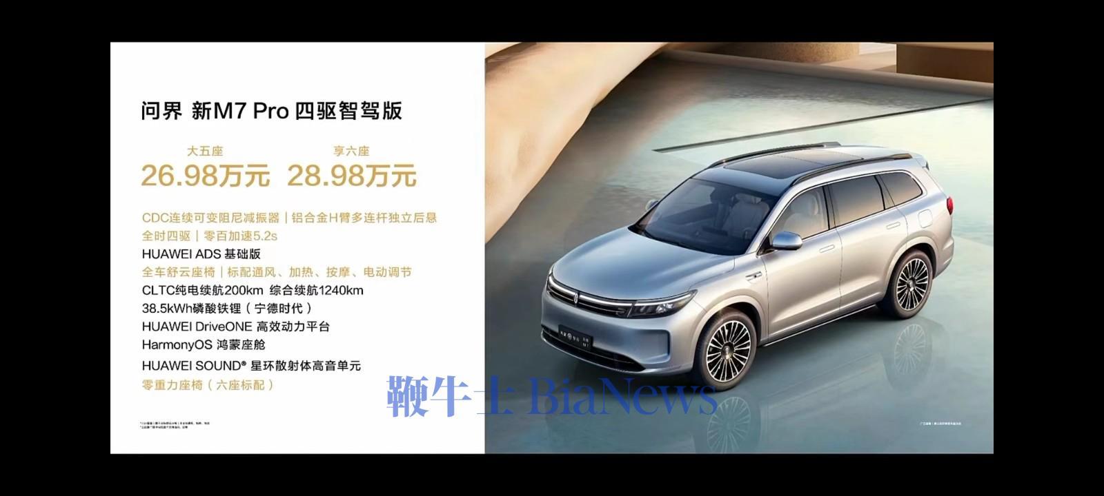 鞭牛士 8月26日消息,问界新M7 Pro车型今日正式上市,共推出四款车型:五座后驱智驾版24.98万元,六座后驱智驾版26.98万元,五座四驱智驾版26.98万元,六座四驱智驾版28.98万元。