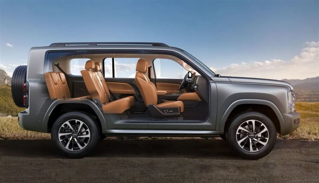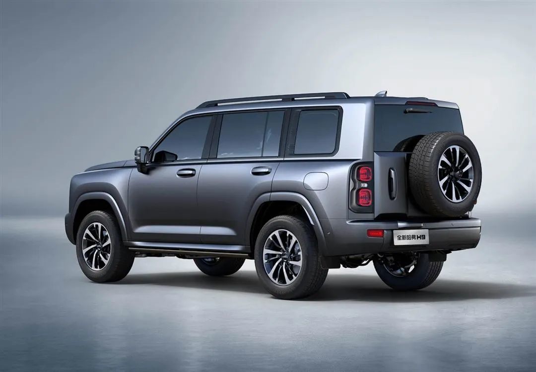 全新一代哈弗H9采用了前后短悬的设计,轮前和轮后都比较短,这样做的好处是让接近角和离去角更有优势车。车身尺寸方面,新车的长宽高分别为5070/1960、1976/1930mm,轴距为2850mm。通过数据不难看出,整台车在尺寸方面是要比方程豹豹5大了一圈的。车尾是一个非常垂直的造型设计,男性朋友最喜欢、最有情怀的后挂备胎被保留下来了,实车的后杠还是非常敦实的,尾门的开启方式还是侧开的。