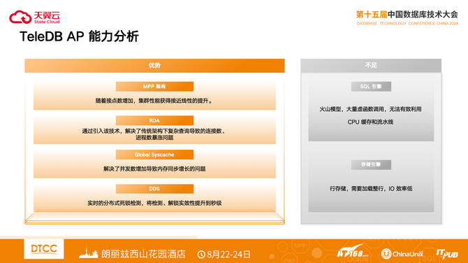 通过引入RDA技术,解决了传统架构下复杂查询导致的连接数、进程数暴涨问题。Global Syscache解决了并发数增加导致内存同步增长的问题。DDS实时的分布式死锁检测,将检测、解锁实效性提升到秒级。
