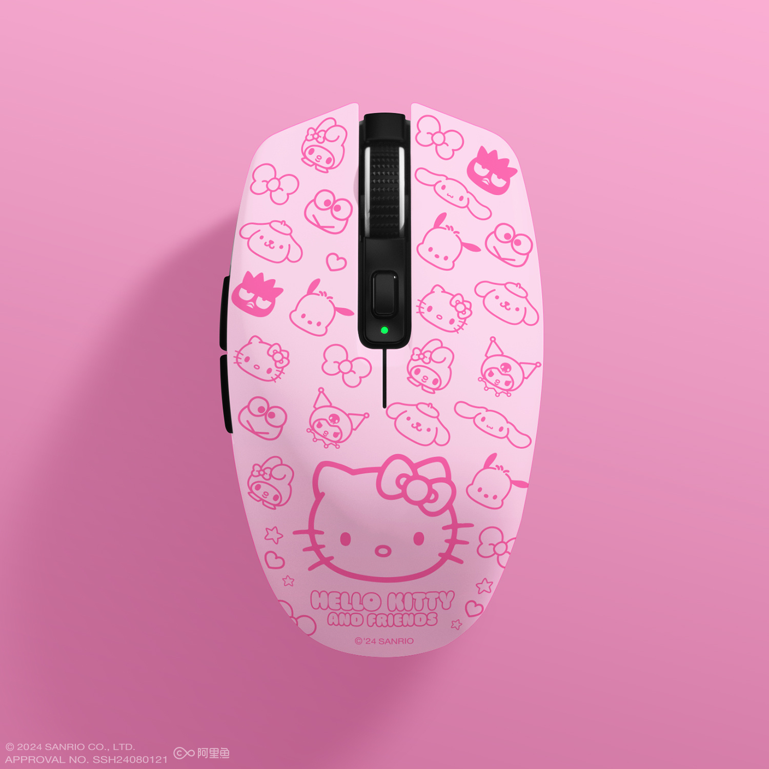 Sanrio characters 限定款无线鼠标也一样采用了粉嫩的色彩,支持蓝牙和 2.4G 双模连接,搭载雷蛇 5G 光学传感器、第二代 RAZER 机械微动和 100% PTFE 鼠标垫脚,另外还有板载存储以设置配置文件。