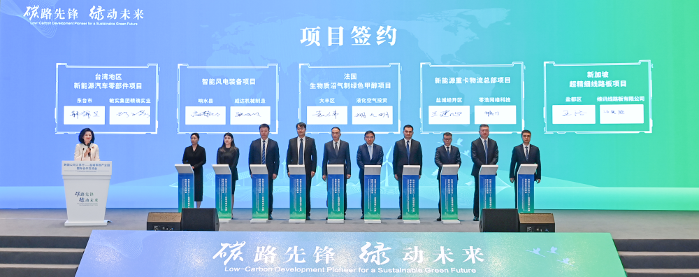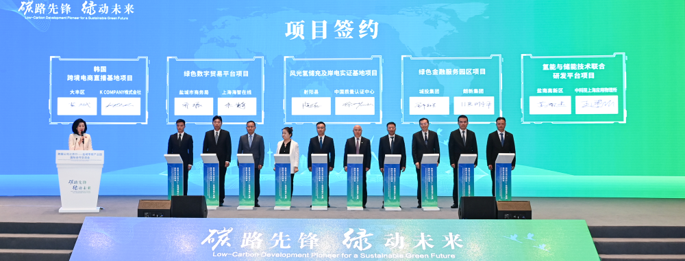 交流会上,发布了盐城市首批省碳达峰碳中和试点名单、沿海零碳产业园区建设规范、产品碳足迹量化方法光伏组件标准、零碳旅游景区名单,一批绿色低碳项目成功洽谈并现场签约。美国空气产品公司全球副总裁、亚洲区总裁陆可为,德国巴斯夫集团高级副总裁、大中华区营运与基地管理负责人薄扬,美国美敦力公司全球副总裁、中国骨科与神外业务兼外科业务总经理于婧,联合利华全球副总裁兼大中华区公共事务总裁曾锡文等来自世界500强企业、跨国公司、绿色低碳行业领军企业代表参加有关活动。