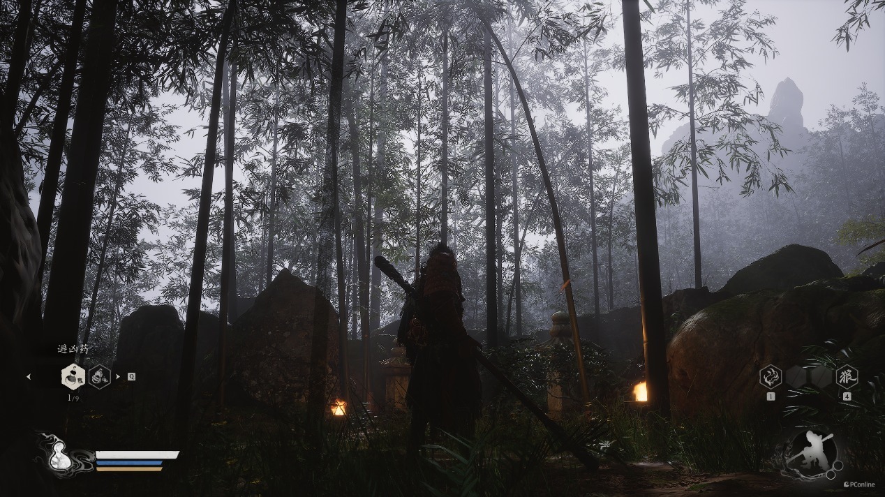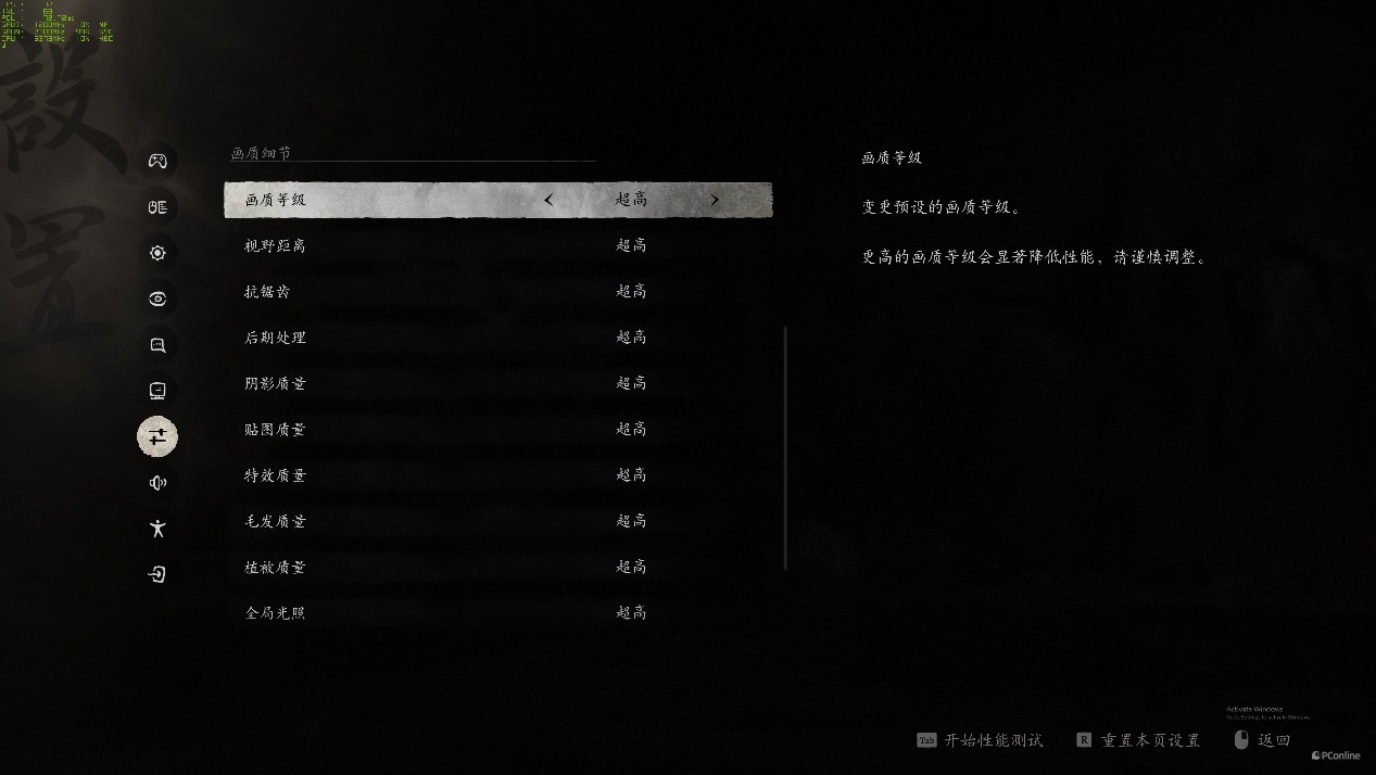 不过效果再好,性能不行也白搭。这里我们也是进行了实机测试,虽然游戏内自带Benchmark,它与之前的《黑神话:悟空 性能测试工具》是一样的,不过没有战斗场景,因此我们这次采用实机测试的方法,即在第一关苍狼林里进行战斗、跑图的方式,尽可能的保证游戏体验与玩家的一致。
