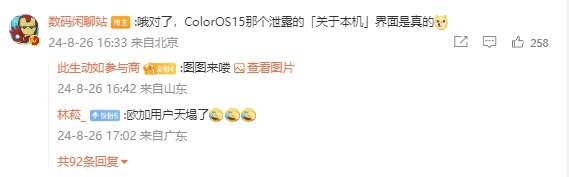 8月27日消息,知名数码博主@数码闲聊站在社交媒体上与粉丝互动时透露,OPPO即将推出的ColorOS 15系统泄露的「关于本机」界面截图是真实的。这一消息迅速引起了广大OPPO用户和科技爱好者的关注。