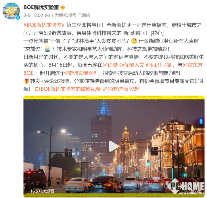 据了解,《BOE解忧实验室》是由京东方自制的国内科技企业技术科普综艺节目,在节目中,将硬科技知识通过更加有趣味的方式与多样化的互动进行更加生动的科普。《BOE解忧实验室》在2022年首播后,就得到了很多朋友得到关注与好评。第三季从8月16日起播出,目前已经播出了两期。