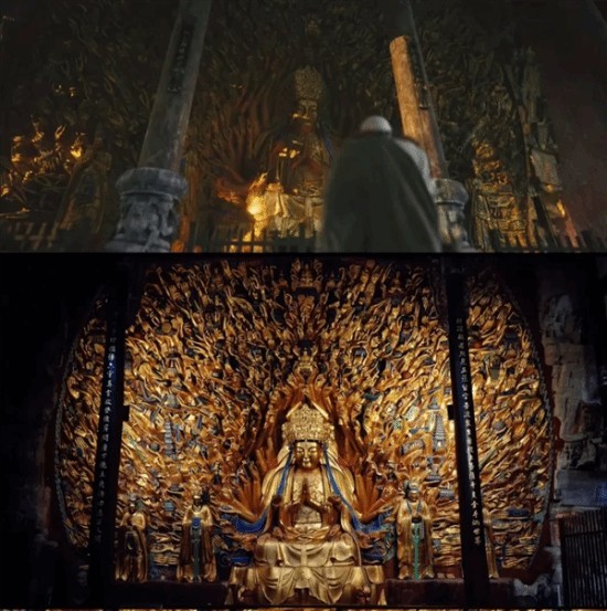 游戏中“金色千手观音”的画面极其震撼,其原型就来自于世界文化遗产——重庆大足石刻。这是重庆市大足区境内所有石刻造像的总称,造像始建于初唐,历经唐末、五代,盛极于两宋,代表了公元9—13世纪世界石窟艺术的最高水平。