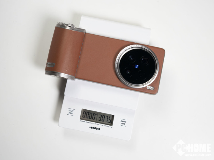 在使用套装时的总重量为307.5克,比裸机重了78.5克,不过单手使用要比裸机稳很多,毕竟手柄与手的接触面更广,单手可以握持。