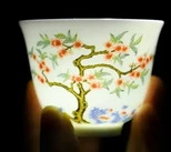 3.1:1复烧: 以故宫官网的康熙五彩十二花神杯为原型,1:1复烧,代表了景德镇瓷器较高的技艺水平。