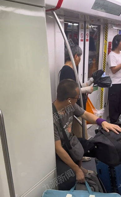 现场视频显示,地铁车厢内,一老人要求坐在爱心专座的男子让座,该男子携带一个行李箱和四个包袋,拒绝让座。