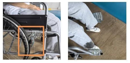 2. 刹住轮椅的车闸,防止轮椅滑动。
