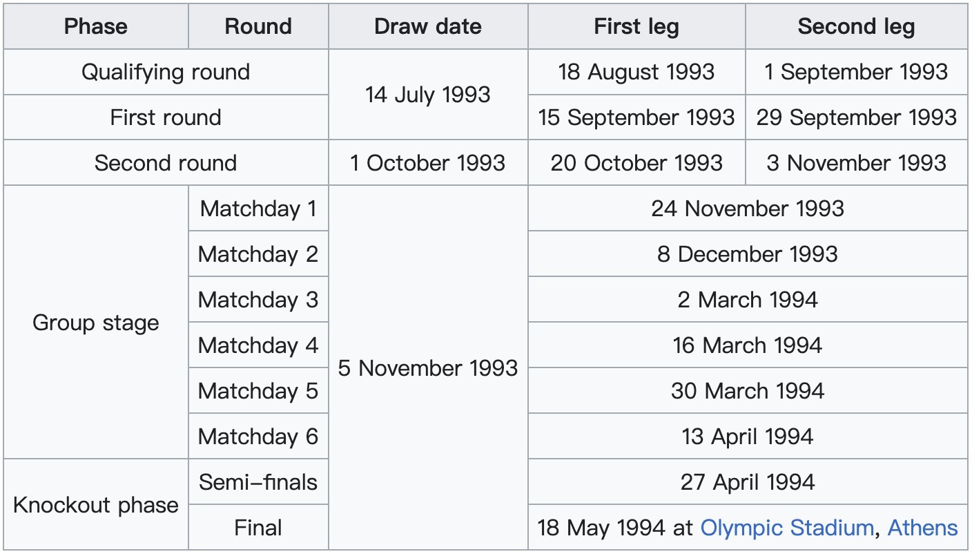 1992-93赛季,欧洲冠军杯改制为欧洲冠军联赛,不过赛制却沿袭了1991-92赛季。当时,冠军杯历史上首次引入了小组赛,1992-93赛季也沿用了小组赛。