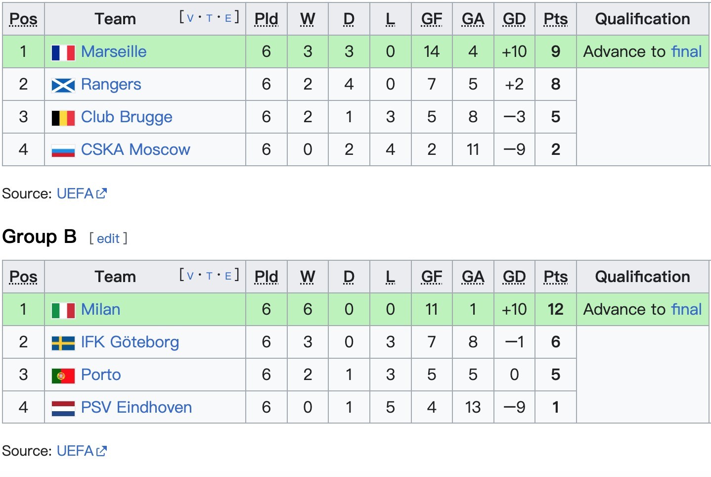 值得注意的是,当时欧冠小组赛还使用着胜一场积2分的规则。