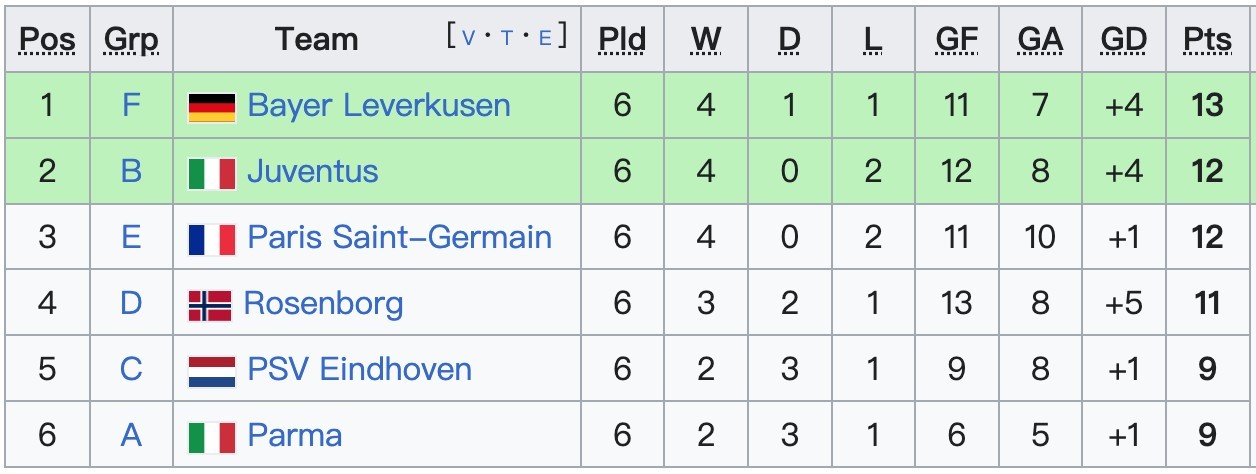 经过两轮资格赛,会师正赛的24支球队被分为六个小组,每组第一名与两个成绩最好的第二名晋级到八强。因此,巴黎圣日耳曼不幸成为欧冠史上第一支小组赛积12分仍无缘出线的球队。