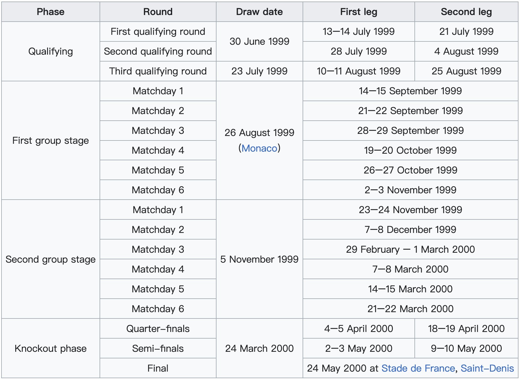 欧冠在1999-00赛季进行了又一次历史性大扩军,参加正赛的球队由24支扩军至32支,算上资格赛总共有71支球队参赛,而前一个赛季是56支。欧战积分前三名的联赛允许四支球队参赛,欧冠资格赛也从原先的两轮增加至三轮。