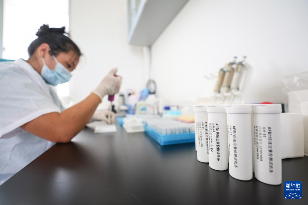 7月10日,在中国热带农业科学院儋州院区的一间实验室,木薯研究中心的科研人员检测木薯成分。