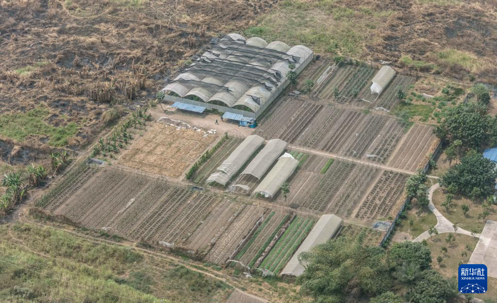 这是8月3日拍摄的位于刚果(布)首都布拉柴维尔的中国援刚果(布)农业技术示范中心大棚(无人机照片)。