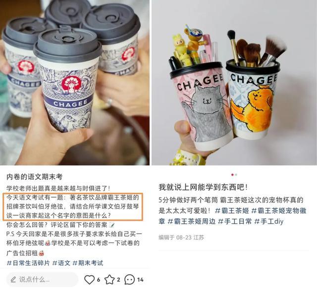 不仅如此,社交平台上还有不少用户对品牌的“二创”和“玩梗”,甚至,上海语文期末考试题中,甚至出现了“茶饮品牌霸王茶姬的招牌伯牙绝弦,请简述商家起名的意图”这样的题目。