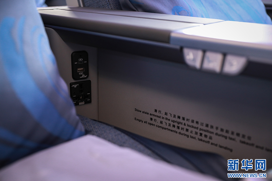 公务舱电源位于扶手下内部。新华网 陈延特摄
