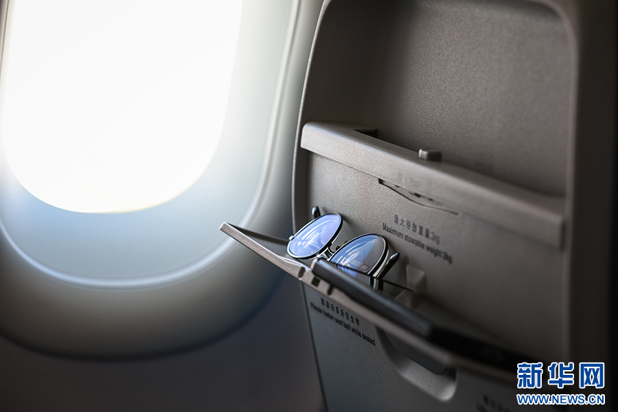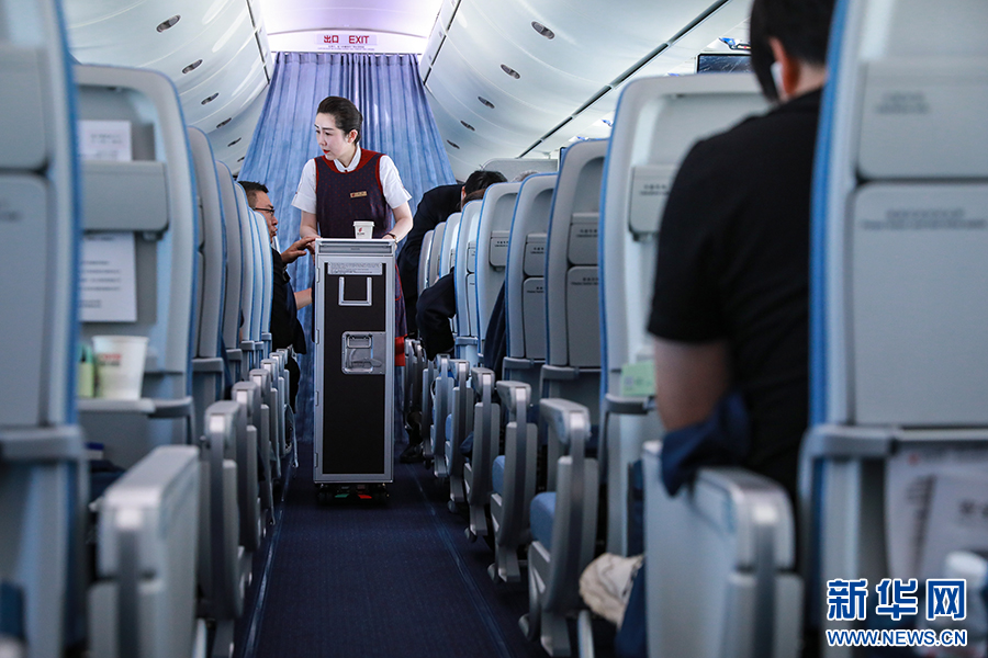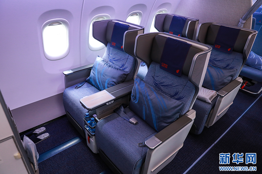 国航C919机型共8个公务舱座位,前后间距40英寸。新华网 陈延特摄