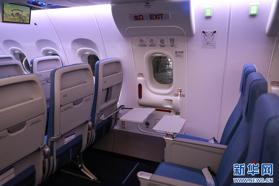 舱内共有158个座位,其中经济舱为三三布局,共150个座位。新华网 陈延特摄