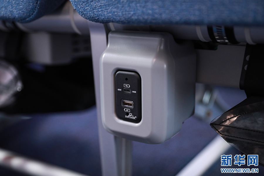 经济舱座椅下方配备充电电源,包括USB和Type-c接口。新华网 陈延特摄