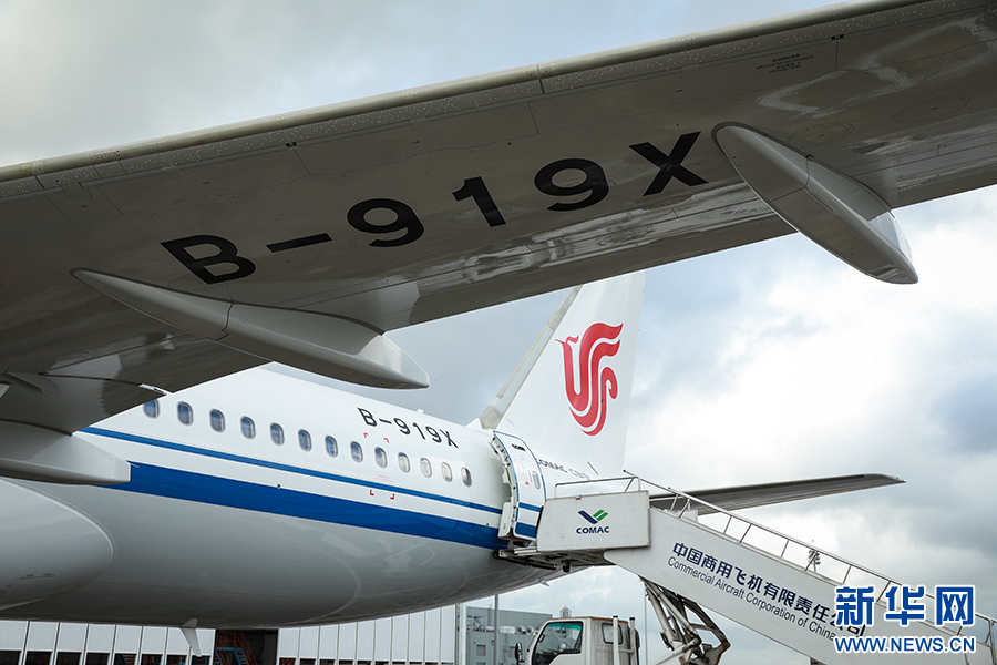 机翼及机身喷涂B-919X注册号,“B”代表飞机的中国国籍,“919”对应C919机型型号,“X”寓意着无限潜能。新华网 陈延特摄