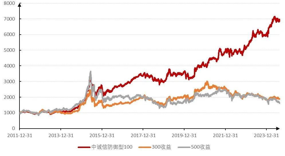 图1 中诚信防御100指数与主流宽基指数的走势对比