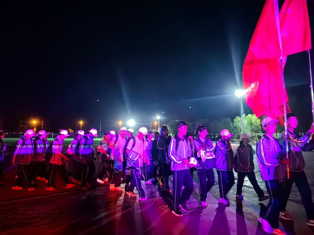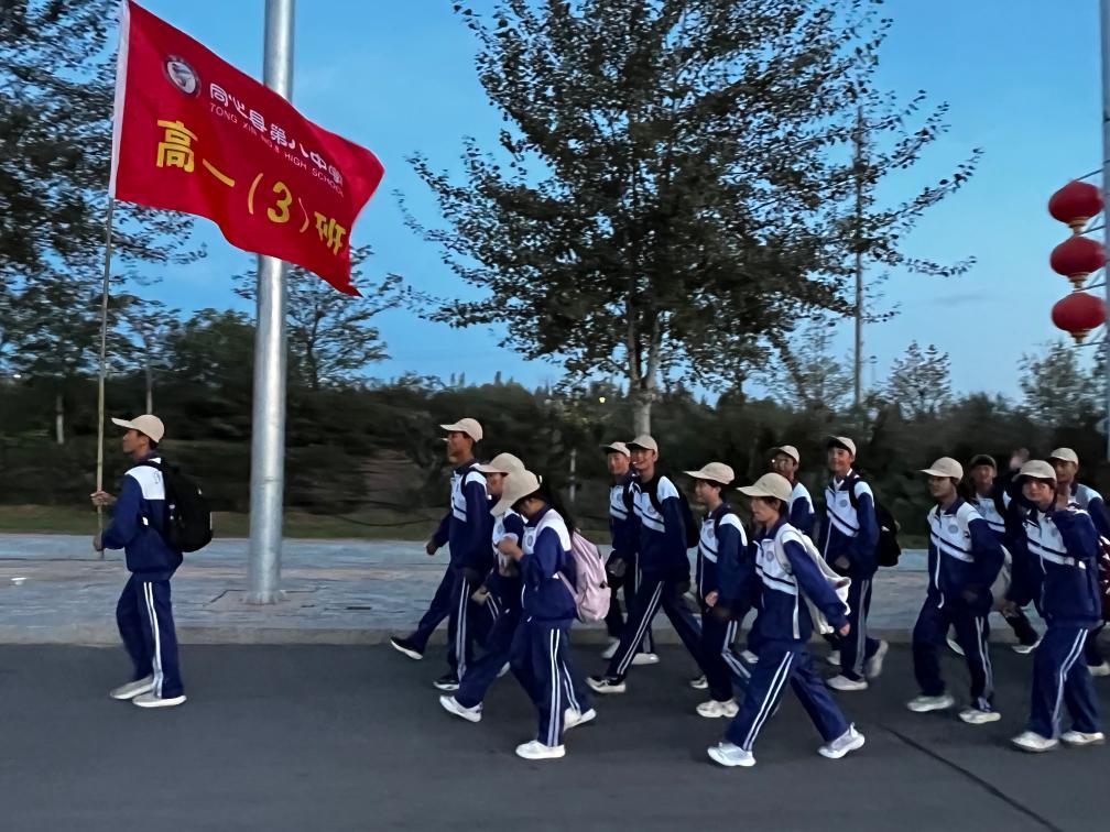 宁夏红寺堡区罗山中学高一学生凌晨5时许开启“行走的思政课”。新华社发