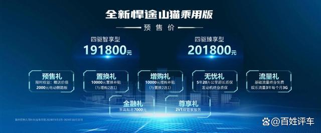 天生强悍,勇者征途!车展现场,江淮皮卡正式发布全新产品规划和全球市场规划,智能化乘用大皮卡—全新悍途乘用版正式上市,更强悍、更舒适、更安全、更智能,市场指导价15.48万元—18.78万元,并带来生活礼、置换礼、增购礼、无忧礼、流量礼、金融礼、尊享礼等七重大礼,以满满的诚意回馈全球热爱;悍途山猫乘用版同步开启预售,预售价格区间为19.18万元—20.18万元,订车可享七重礼,其中预售礼限时2024年9月1日-2024年10月31日。江汽集团股份公司副总经理张鹏,江汽集团股份公司副总经理宋华,江汽集团股份公司总经理助理罗世成,江汽集团股份公司董事会秘书、皮卡公司总经理冯梁森等领导出席,共同见证这一重要时刻,并为江淮皮卡超级品鉴官授牌。
