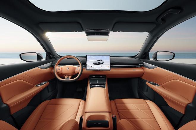 在空间与内饰设计上,深蓝S05同样不遗余力地追求极致。其采用“共生美学”设计理念,并汲取飞行器元素灵感,打造出“星际飞翼设计语言”的车身形态。