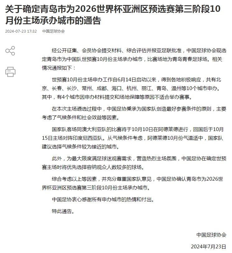 据《半岛都市报》报道,为保障国足10月15日主场对阵印尼队的世预赛比赛,比赛场地青岛青春足球场近期将更新草坪,这也意味着青岛海牛9月份的两个主场比赛可能会受到影响,目前海牛队正在寻求应对策略,寻找适合的场地。