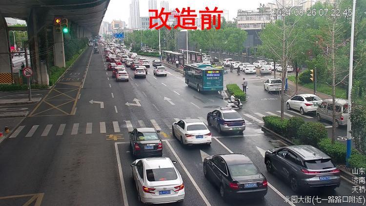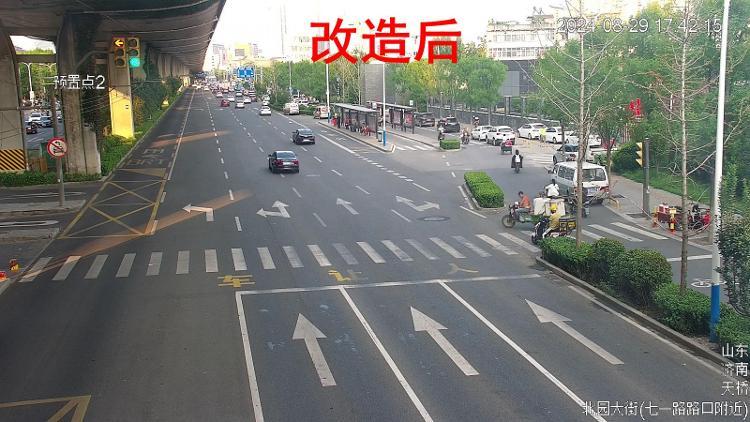 记者了解到,济南首条双可视智能可变导向车道北园大街历山路路口西口正式启用,优化后西口晚高峰直行的排队长度由340米降低至200米,降低了约41.2%,西口交通拥堵得到较大程度的缓解。