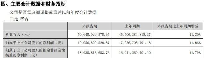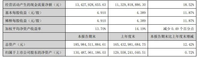 8月28日,宜宾五粮液股份有限公司(以下简称“五粮液”)正式发布2024年半年度报告。报告显示,今年上半年,五粮液实现营业收入506.48亿元,同比增长11.30%;归母净利润190.57亿元,同比增长11.86%,顺利实现了目标任务“双过半”。