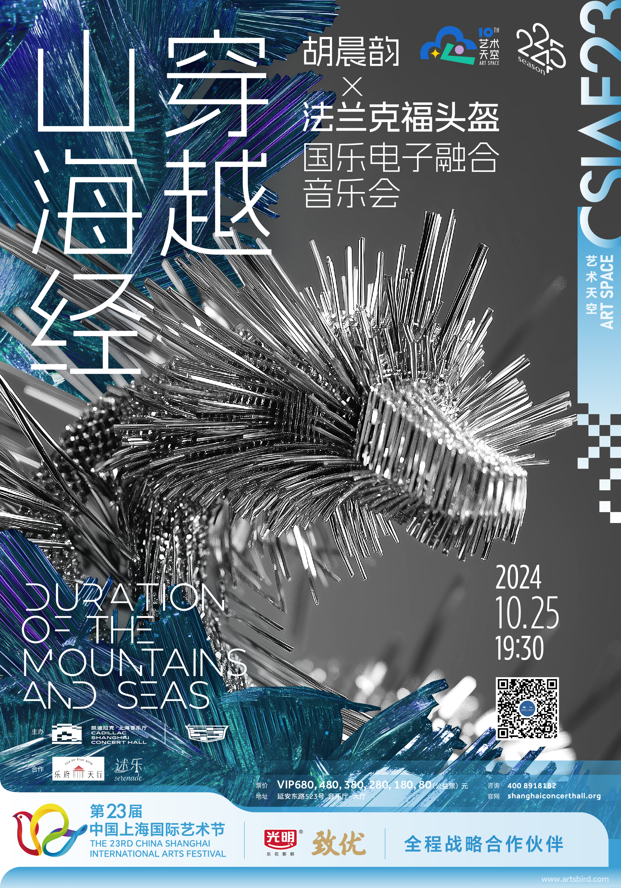今年10月,胡晨韵将携手电子乐队法兰克福头盔,带来《穿越·山海经》国乐电子融合音乐会。唢呐等古老而充满力量的传统原声乐器,与现代电子音乐的合成器、鼓机等设备相结合,勾勒《山海经》里的瑰丽世界,对话宇宙和未来。“期待新的融合不仅展现中国民族音乐的魅力,也为世界音乐语汇增添新维度。”他说。
