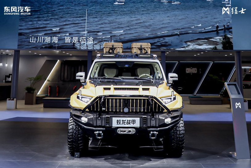 “犀利的外观,棱角分明。沙漠风暴黄的涂装搭配银顶撞色,龙牙直瀑式中网,增加了大面积碳纤维,更凸显机甲风格.....”为了满足军迷、都市酷玩族和专业越野玩家的共同需求,东风猛士科技与博纳影业携手打造了中国第一款电影联名车——猛士917蛟龙战甲。