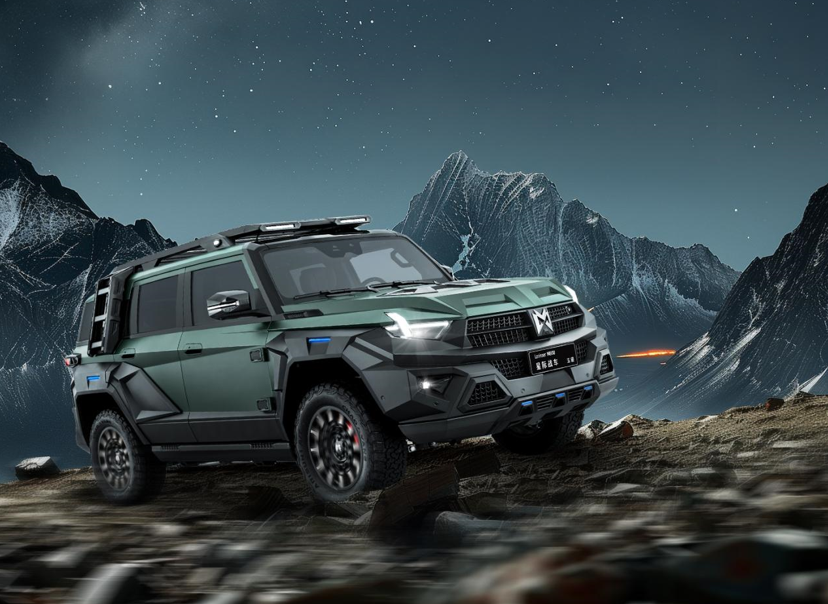新车不仅继承了猛士军车级硬核越野基因,更融入了百年高定品质,是猛士与著名改装品牌罗伦士共同打造的车型。在外观方面,新车“星际战车”设计风格,在原本的基础上重新设计前后包围和宽体,车身侧面还有罗伦士专属LOGO,车顶重新设计的行李架融合了探照灯和尾翼设计。车顶加高110mm,硬核气质十足;独一无二的硬核战斗座舱,12.3英寸液晶屏、15.6英寸中控大屏和12.3英寸副驾驶屏三屏分立,智享多元出行新体验。