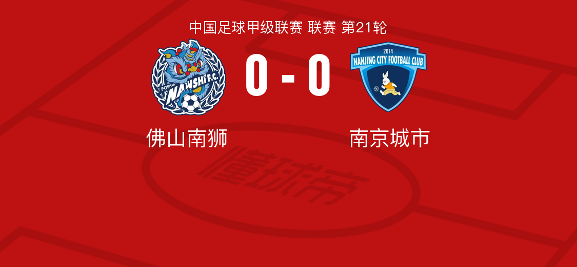 在中国足球甲级联赛第21轮的比赛中,佛山南狮坐镇主场迎战南京城市。经过激烈的对抗,双方均未能攻破对方球门,比赛最终以0-0的比分收场。尽管两队在场上拼尽全力,但均未能找到破门良机,比赛以平局告终。