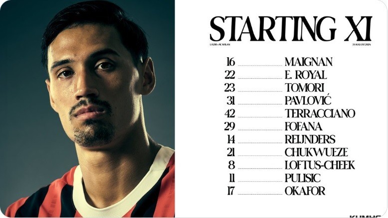 此外,中后场埃默松和优素福-福法纳首次首发。托莫里担任本场比赛队长。昨晚抵达米兰的塔米-亚伯拉罕将坐在替补席上。