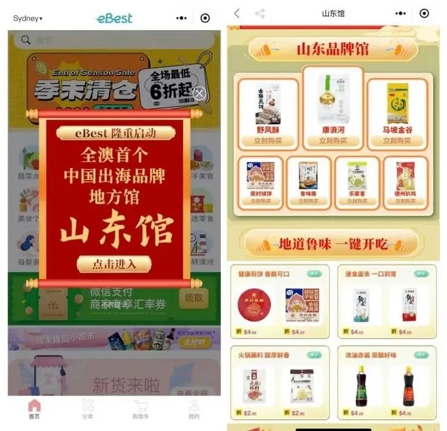 近日,在山东省商务厅的指导支持下,山东省老字号企业协会与澳大利亚EWE集团达成战略合作,在购物App“eBest”正式上线山东馆,这是澳大利亚首个中国地方品牌馆。