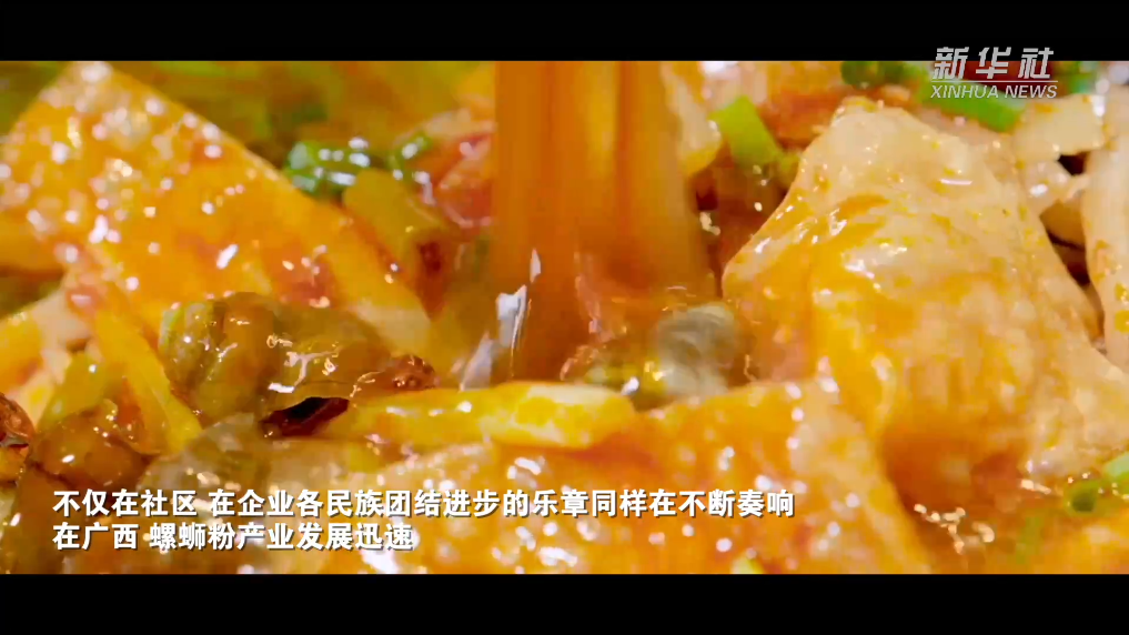 不仅在社区,在企业各民族团结进步的乐章同样在不断奏响。在广西,螺蛳粉产业发展迅速。近年来,柳州市不断加大对螺蛳粉产业的研发投入,全力打造“柳州螺蛳粉”品牌,带动各族群众加入到螺蛳粉产业中,螺蛳粉发展成为“致富”粉、“团结”粉,一碗螺蛳粉“嗦”出了大产业,“圈粉”千万家。