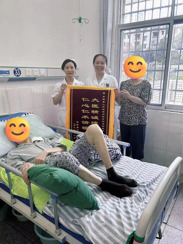许大爷脸上也露出了久违的笑容,家人也非常高兴和感激,特送来锦旗表达感谢。